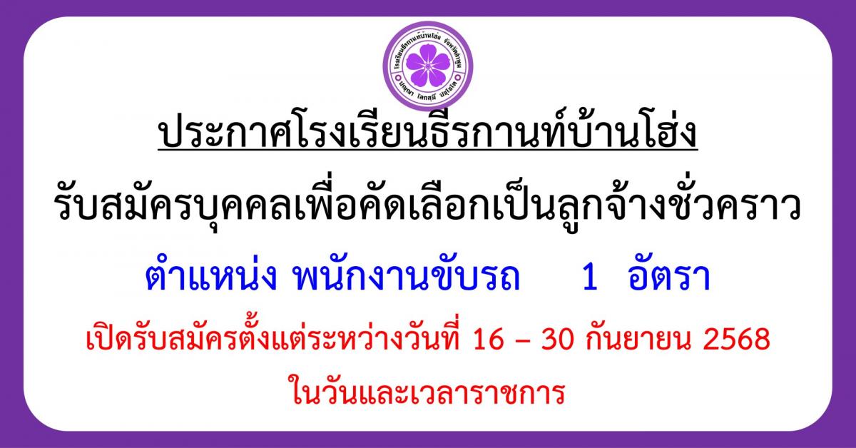 ประกาศรับสมัครลูกจ้างชั่วคราว ตำแหน่งพนักงานขับรถ 1 อัตรา